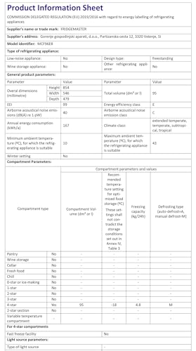 Fridgemaster MCF96EB 95L Chester Freezer 4 Star Freezer Rating - 47.9D x 54.6W x 85.4H cm Black - E Rated
