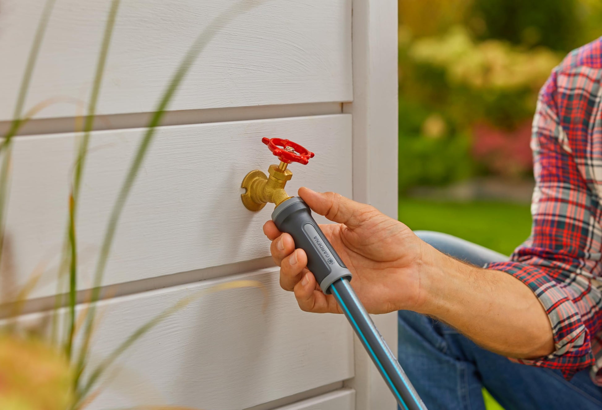 Details: Introducing the Gardena wall-mounted hose reel, a sleek and practical solution for garden hose storage and management. This robust unit features a modern gray design that seamlessly integrates with any outdoor space. The automatic retraction system allows for smooth, controlled hose rewinding, while the sturdy wall mount provides stable support. The reel comes with a high-quality hose and spray nozzle attachment, making it perfect for watering tasks around your yard. The innovative design prevents kinks and tangles, ensuring consistent water flow every time. The durable construction protects the hose from UV damage and weathering, while the compact form saves valuable space in your garden area. Installation is straightforward, and the swivel function allows for flexible use in multiple directions. This hose reel system combines convenience with reliable performance for all your outdoor watering needs.