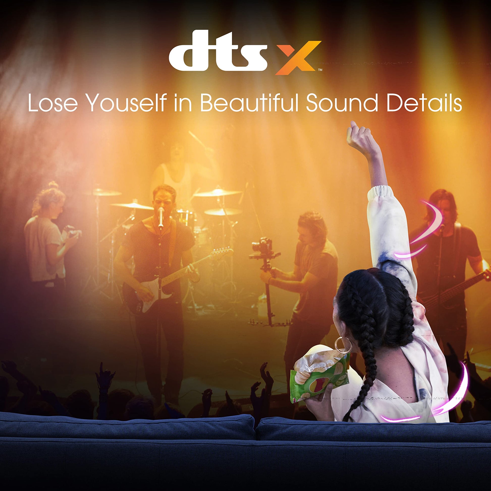 - DTS Virtual X: Enjoy an immersive audio without the need for height speakers, the bass perception engages you into the center of a performance.