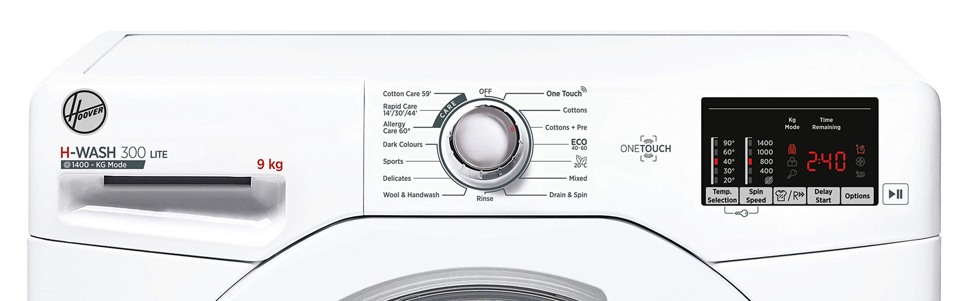 Hoover H-Wash 300 H3W492DE Free Standing Washing Machine, Rapid Wash Cycles, 9 kg Load, 1400 rpm, White