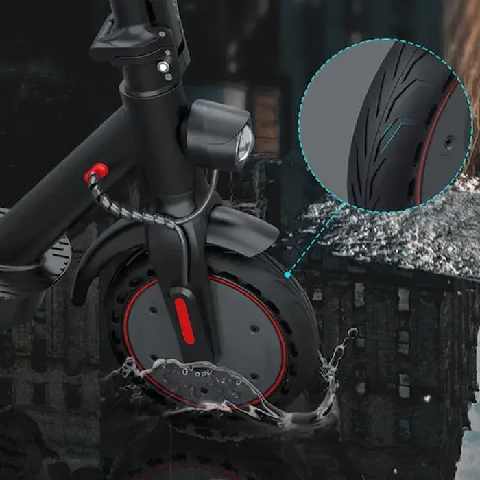 Featuring 8.5-inch honeycomb solid tires, the iScooter i9 provides excellent grip and stability on various surfaces. These tires are designed to be puncture-resistant, eliminating the worry of flats during your ride. Furthermore, their sturdy construction ensures a smooth ride, enhancing comfort on uneven terrain. Consequently, the combination of solid tires and the iScooter i9's advanced suspension system contributes to a reliable and enjoyable riding experience for every user.