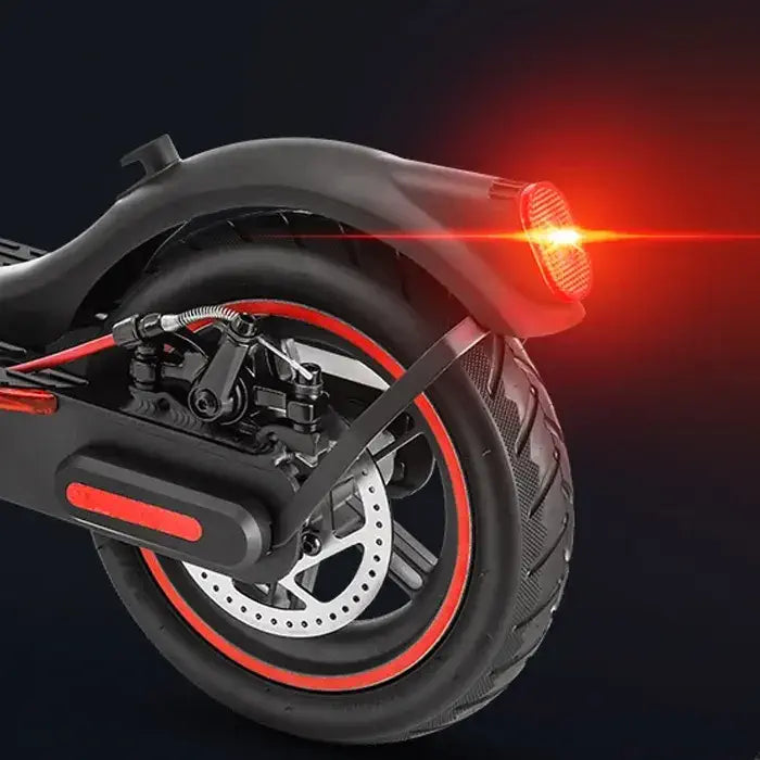 The iScooter i9 features red taillights, further enhancing rider visibility on the road. These taillights serve as important indicators for other vehicles, signaling your presence while riding. By ensuring that you are seen from behind, the red taillights contribute to overall safety during nighttime and low-light conditions. Consequently, the iScooter i9 prioritizes rider safety with its comprehensive lighting system, making it a reliable choice for any journey.