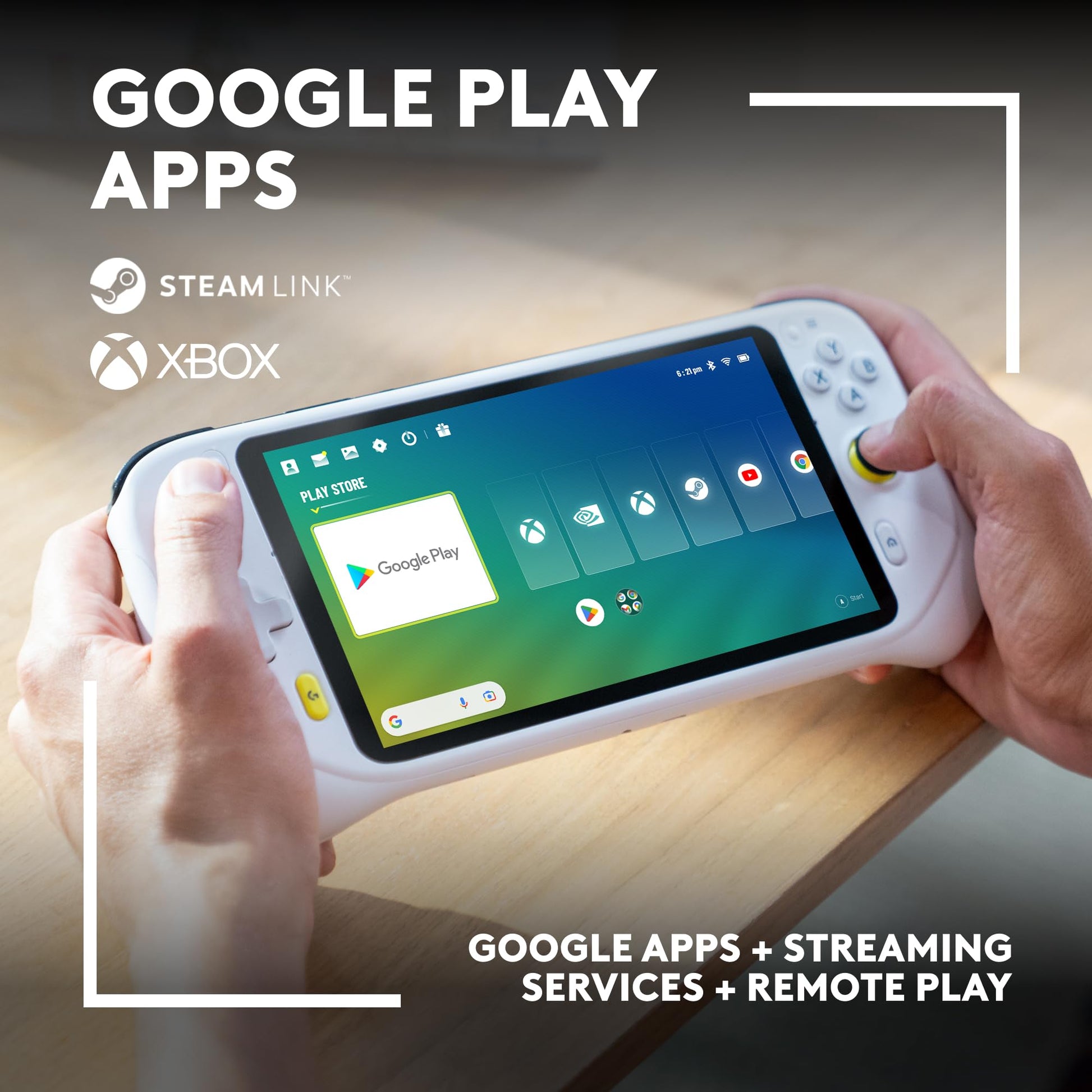 Details: About this item: Handheld gaming device with connectivity to multiple cloud gaming services including Xbox Cloud Gaming and NVIDIA GeForce NOW, up to 1080p and 60fps Play anywhere with WiFi Remote play with the Xbox app and Steam Link app Download more apps from the Google Play App games 7-inch 1080p 60Hz 16:9 touchscreen 12+ hour battery life (1) Lightweight (463 g) handheld gaming console Haptics (2), gyroscope, and remappable controls Certified Carbon Neutral (1) Based on normal streaming play conditions, with 50% screen brightness and 50% volume. Battery life may vary based on user and computing conditions. (2) On compatible games and services.