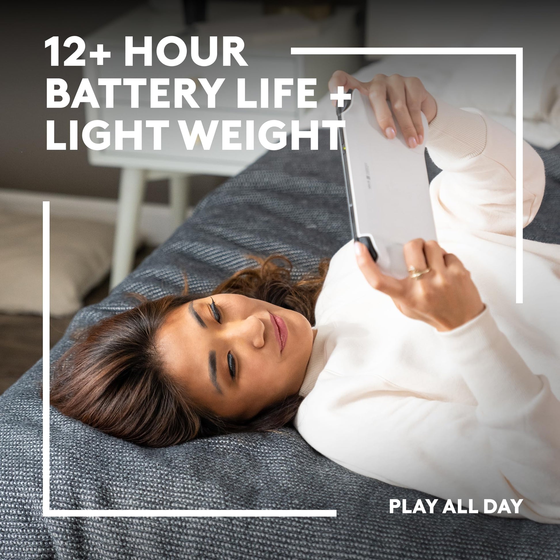 - Handheld: 12+ hour battery life (1) and ridiculously lightweight portable gaming system at 463 g you can comfortably play all day
