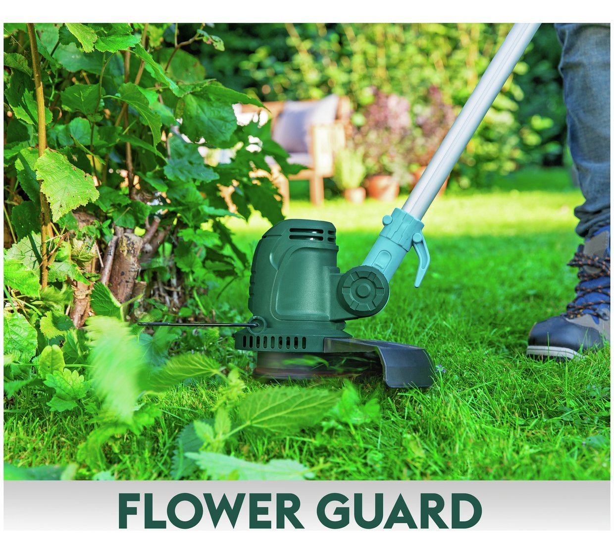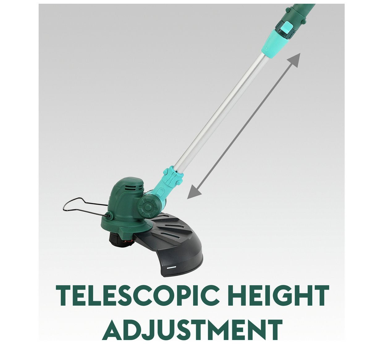 This is a 3-in-1 grass trimmer; change the angle of the cutting head to enable you to edge your lawn, trim your grass and reach under objects such as benches and trampolines.