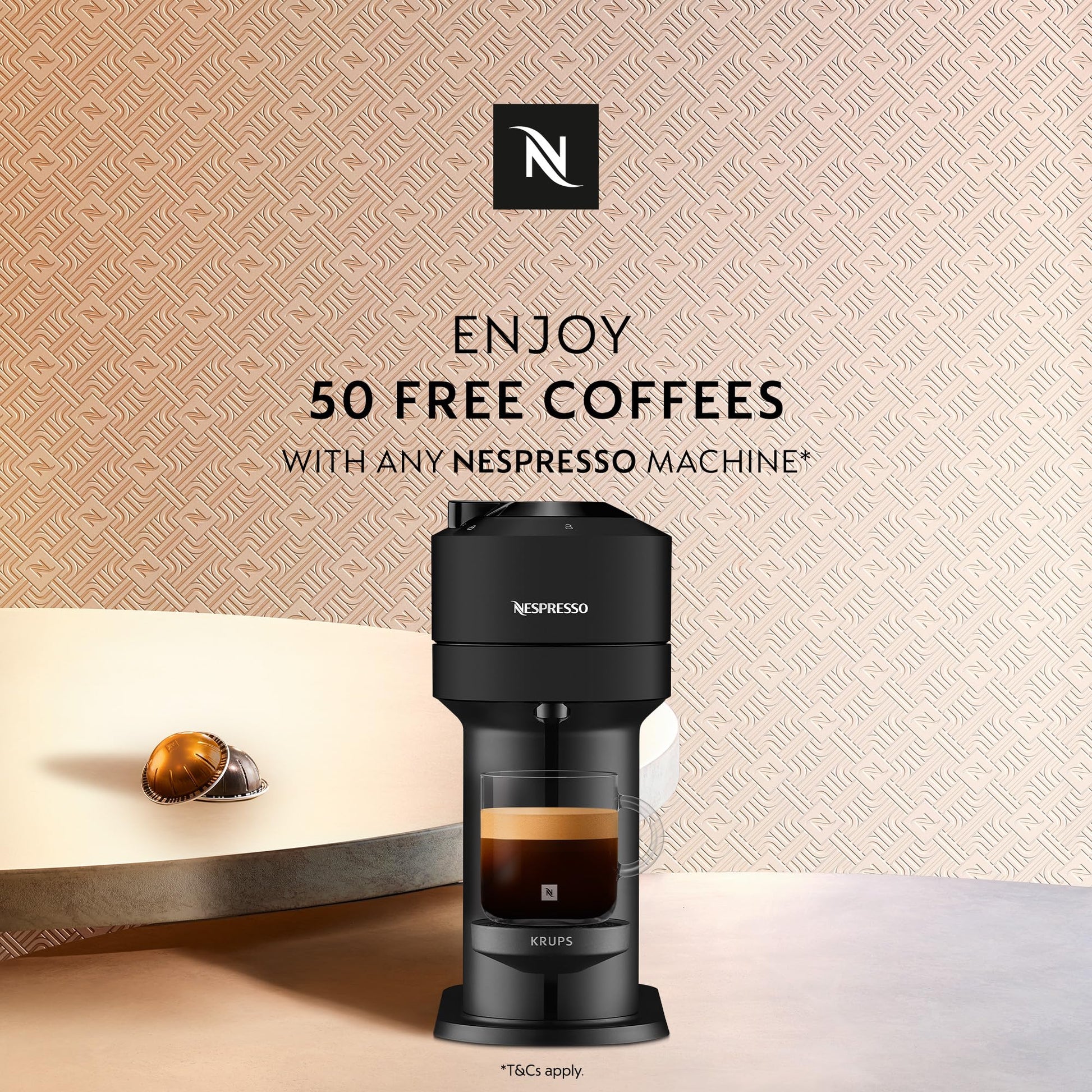 - SUSTAINABLE COFFEE MAKER – Nespresso Next is made from 54% recycled plastics with A+ energy consumption and automatic turn off feature after 2 minutes. Nespresso Vertuo pods are made of at least 85% recycled aluminium and when you recycle your Nespresso capsules, you may help further decrease the carbon footprint of your cup of coffee. Our free programme makes recycling your used capsules easy and convenient