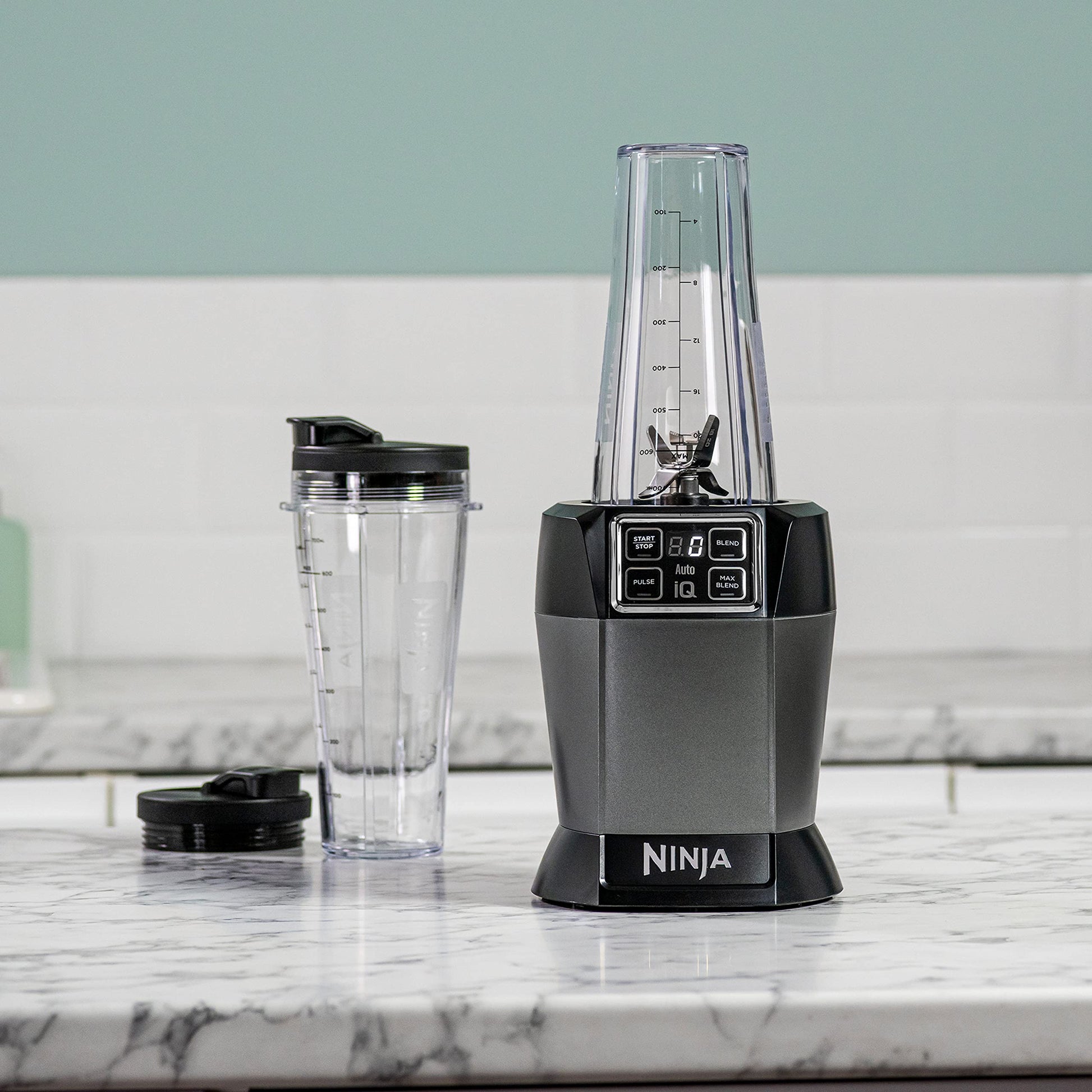 - Blend in the cup, enjoy on-the-go. Easily create delicious smoothies and ice-cool drinks with our latest personal blender. Automatic one-touch blending programs do all the hard work for you – we call it Auto-iQ Technology. Ninja’s durable stainless-steel blades and a powerful 1000W motor easily blend the toughest ingredients, including fruit, vegetables, nuts, seeds and even ice. Inspiration is included with a recipe guide in the box. Ninja - Make yours a Ninja kitchen