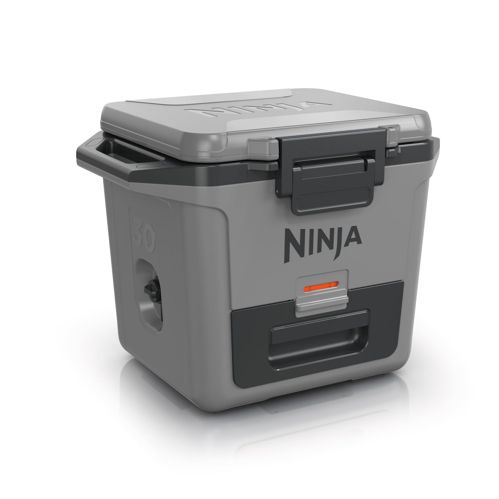 - INCLUDES: Ninja FrostVault 30-quart/28-litre Cooler with integrated Dry Zone drawer. Dimensions: H:48cm W:43.3cm D:61cm. Weight: 9.2kg. Colour: Slate Grey