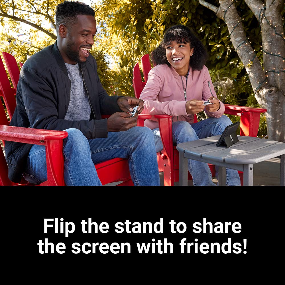 - Flip out the stand and hand a controller to another player to share the screen and enjoy competitive or co-operative multiplayer, anytime and anywhere. Nintendo Switch (OLED model)'s wide adjustable stand can be set to your preferred viewing angle for comfortable gameplay in tabletop mode.
