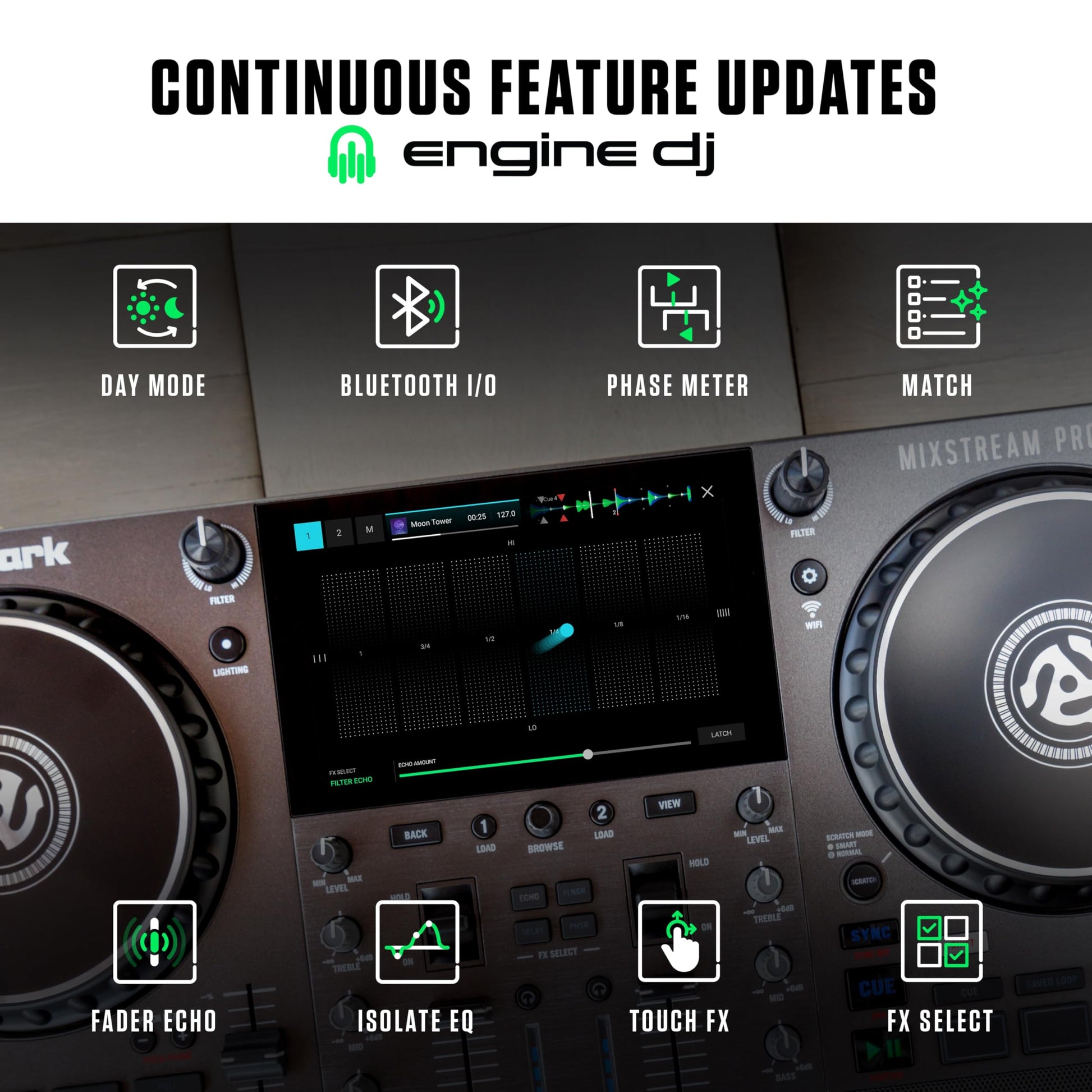 - Laptop-Free Performances with Engine DJ OS - No computer required; Bring music tracks to your controller via SD card, USB drive, Dropbox library and streaming apps; Mix and control over the 7" Touchscreen with adjustable brightness