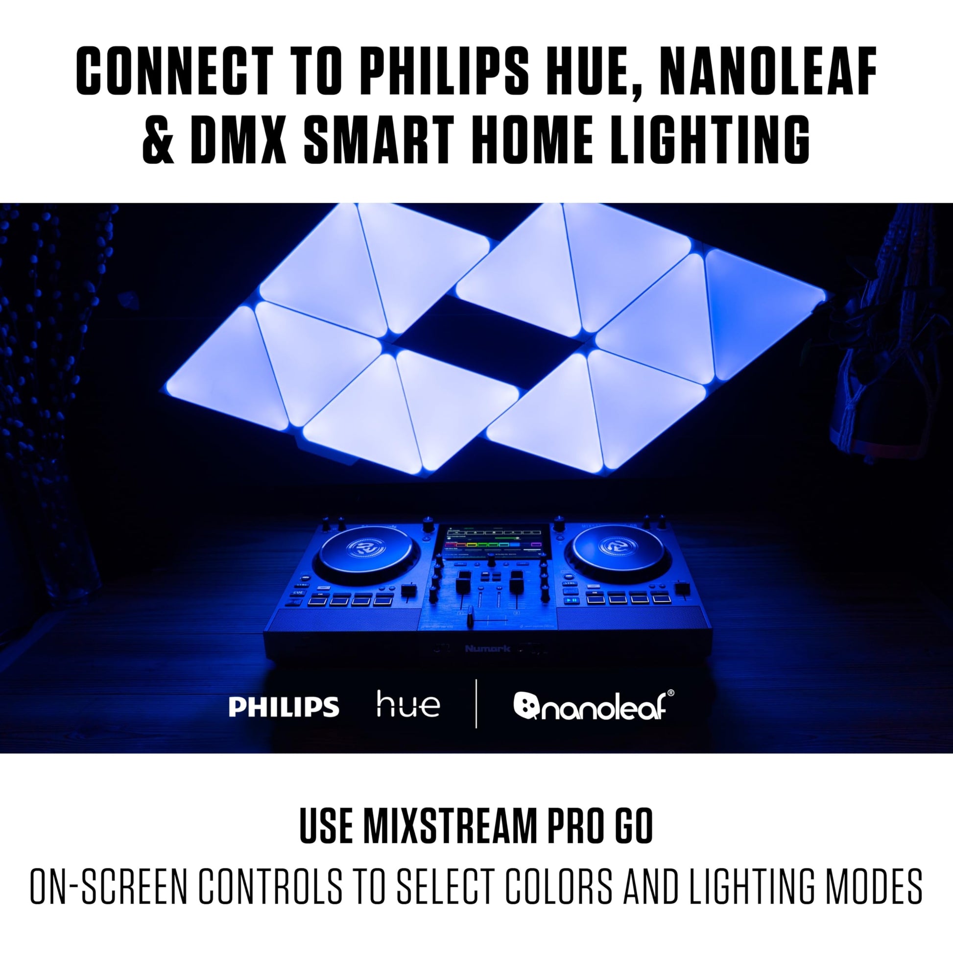 - Control your DJ Lights wirelessly from Mixstream Pro Go (Philips Hue, Nanoleaf & DMX lights) and play via the onboard speakers with dedicated volume control; No need for DJ Headphones and other DJ Equipment