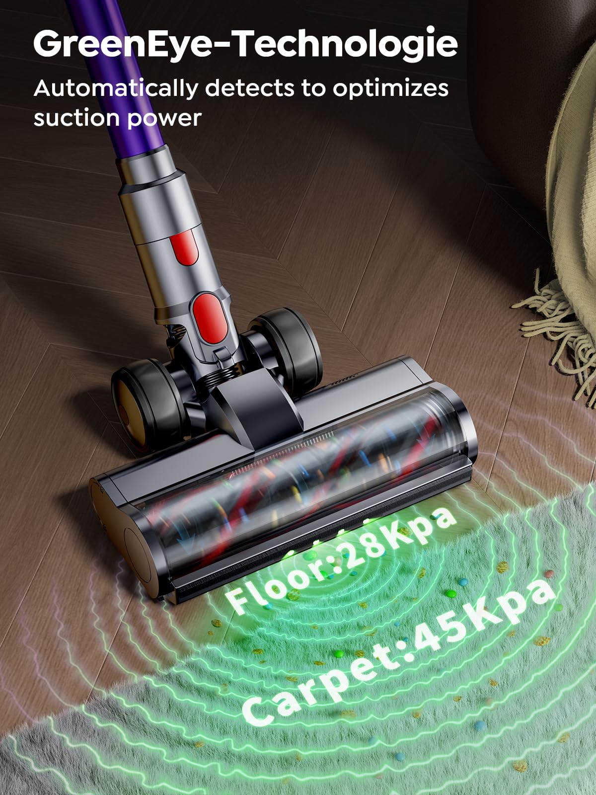 - ๐ [550W Brushless Motor and 45KPa Powerful Suction] The cordless vacuum cleaner is equipped with the latest upgraded brushless motor of 2024, delivering an impressive power output of 550W and ensuring a remarkable suction capability of up to 45Kpa. The vacuum cleaners effortlessly removes dust, pet hair, and stubborn dirt from carpets, hardwood floors, and furniture surfaces, effectively addressing your cleaning concerns!