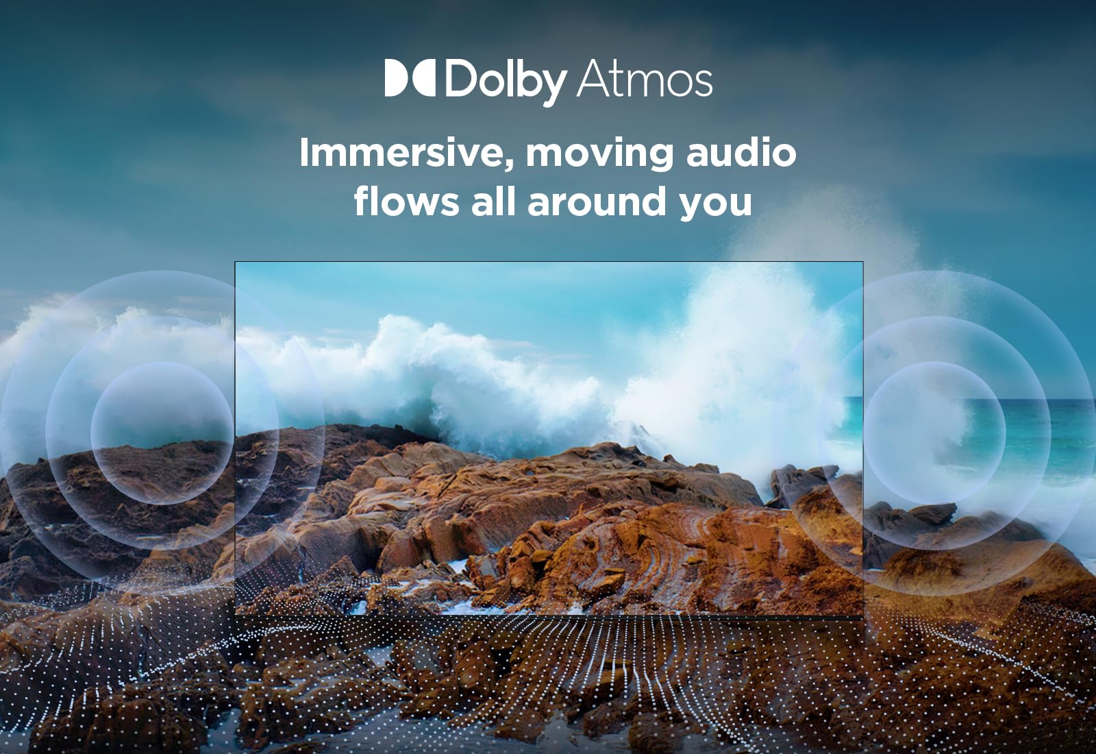 - Dolby Atmos 2.0】Immersive, moving audio flows all around you. Sound has never sounded this good. Feel a deeper connection to the stories and music you love with sound that moves all around you with breathkaing realism.