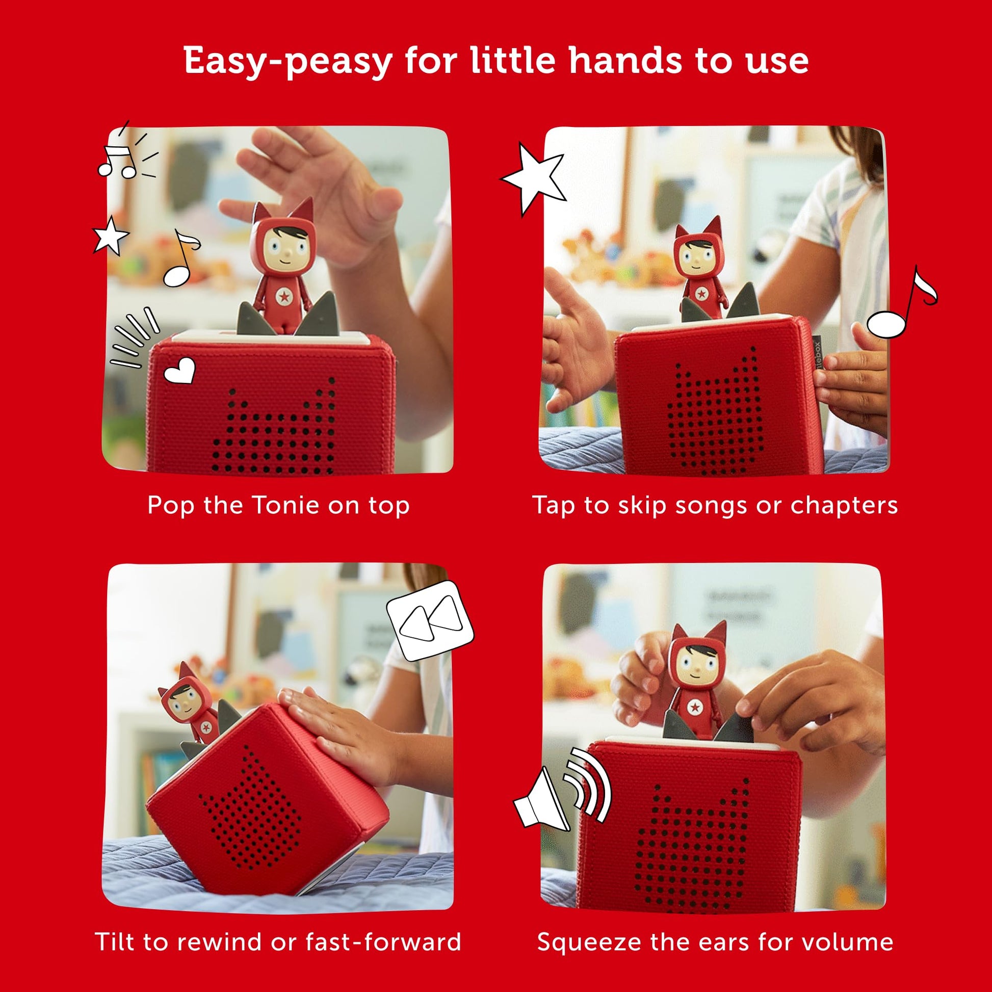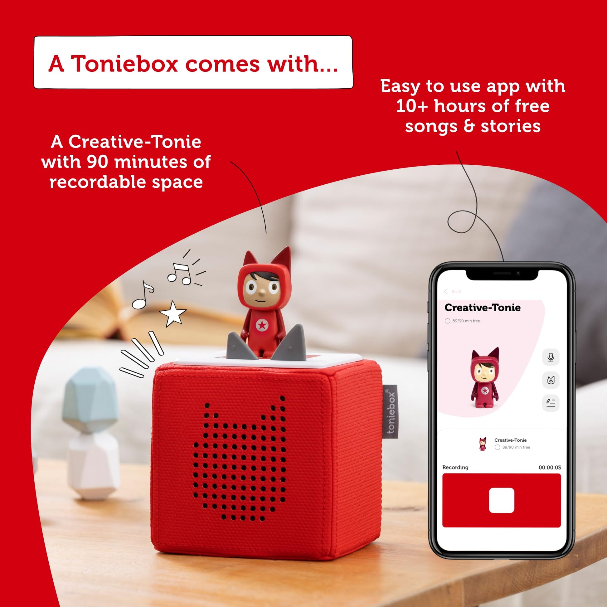 - Whether it’s bedtime, story time or playtime, kids just pop a Tonie on the Toniebox and they’re all set. Each bundle includes at least three Tonies, a Toniebox and charger, and a Creative-Tonie.