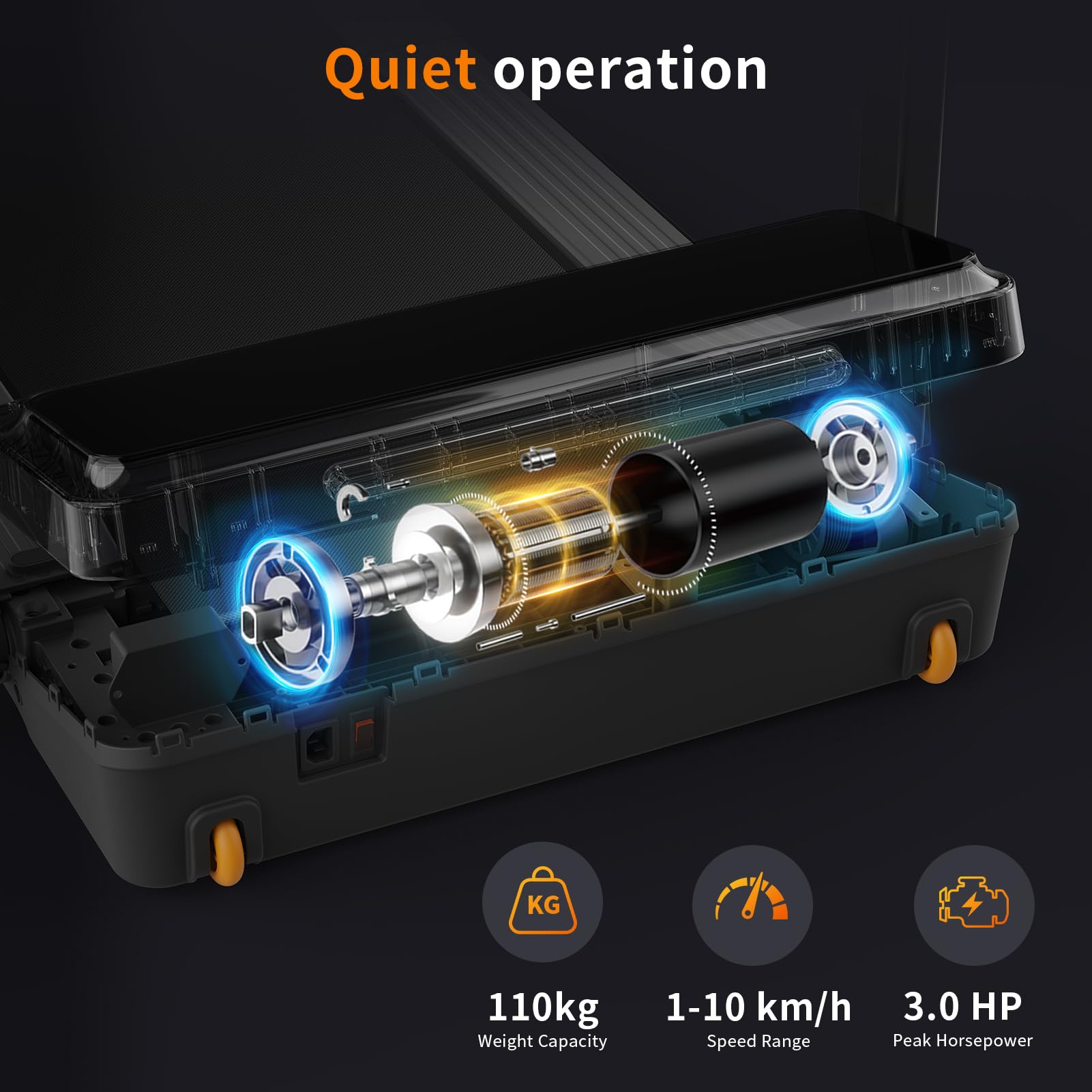 - Enhanced for Comfort and Convenience - Upgraded large wheels make moving the walking pad foldable over carpets or uneven surfaces effortless. The 40 cm x 120 cm running surface provides ample space, while the multi-layer shock-absorbing belt protects your joints for a smoother run. Noise-reduction technology makes it ideal for flats and shared living spaces.